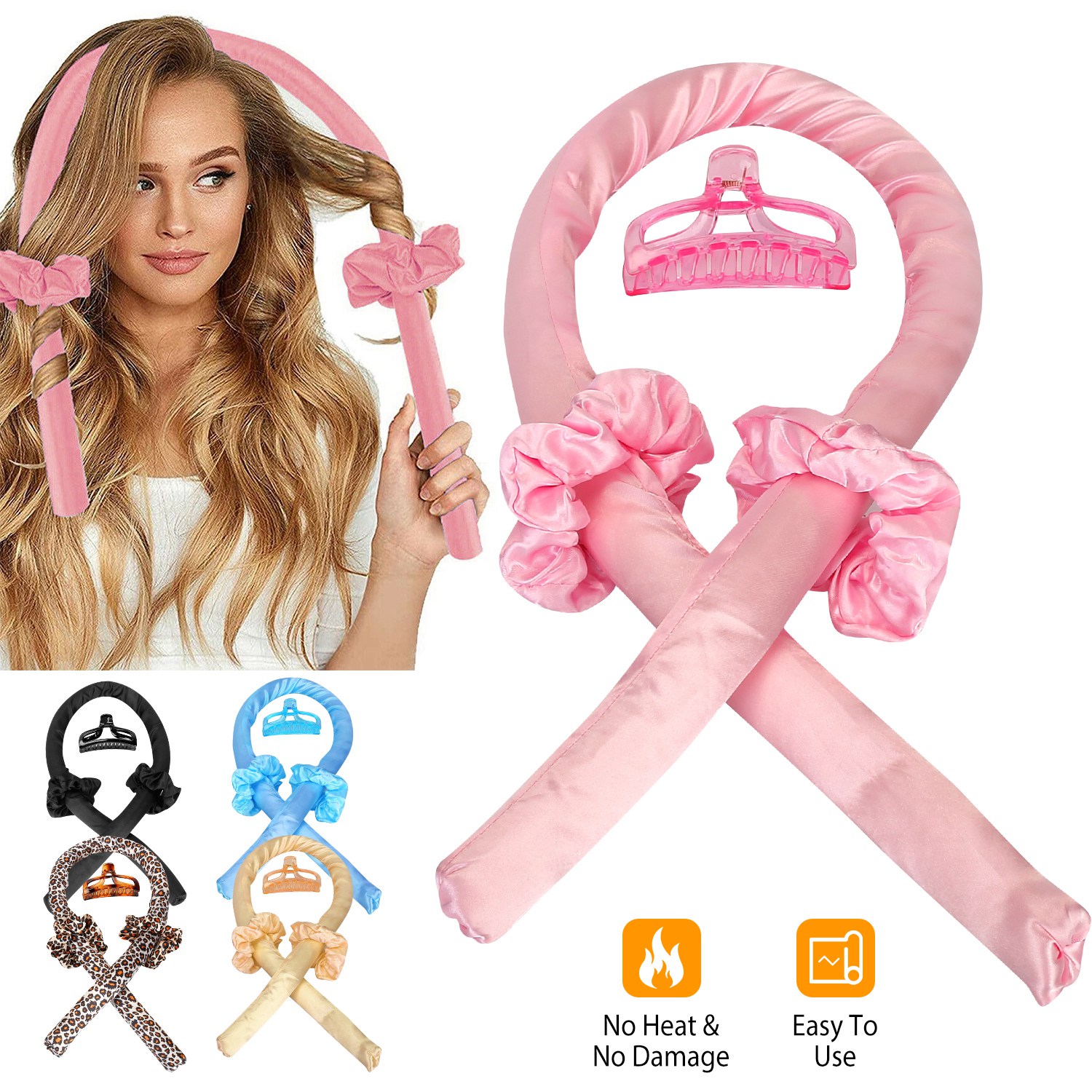 Heatless Curling Rod Headband Curling Ribbon Soft Hair Curlers Rollers Sleep Hair Styler Wave Formers with Hair Loops Clips for Long Medium Hair