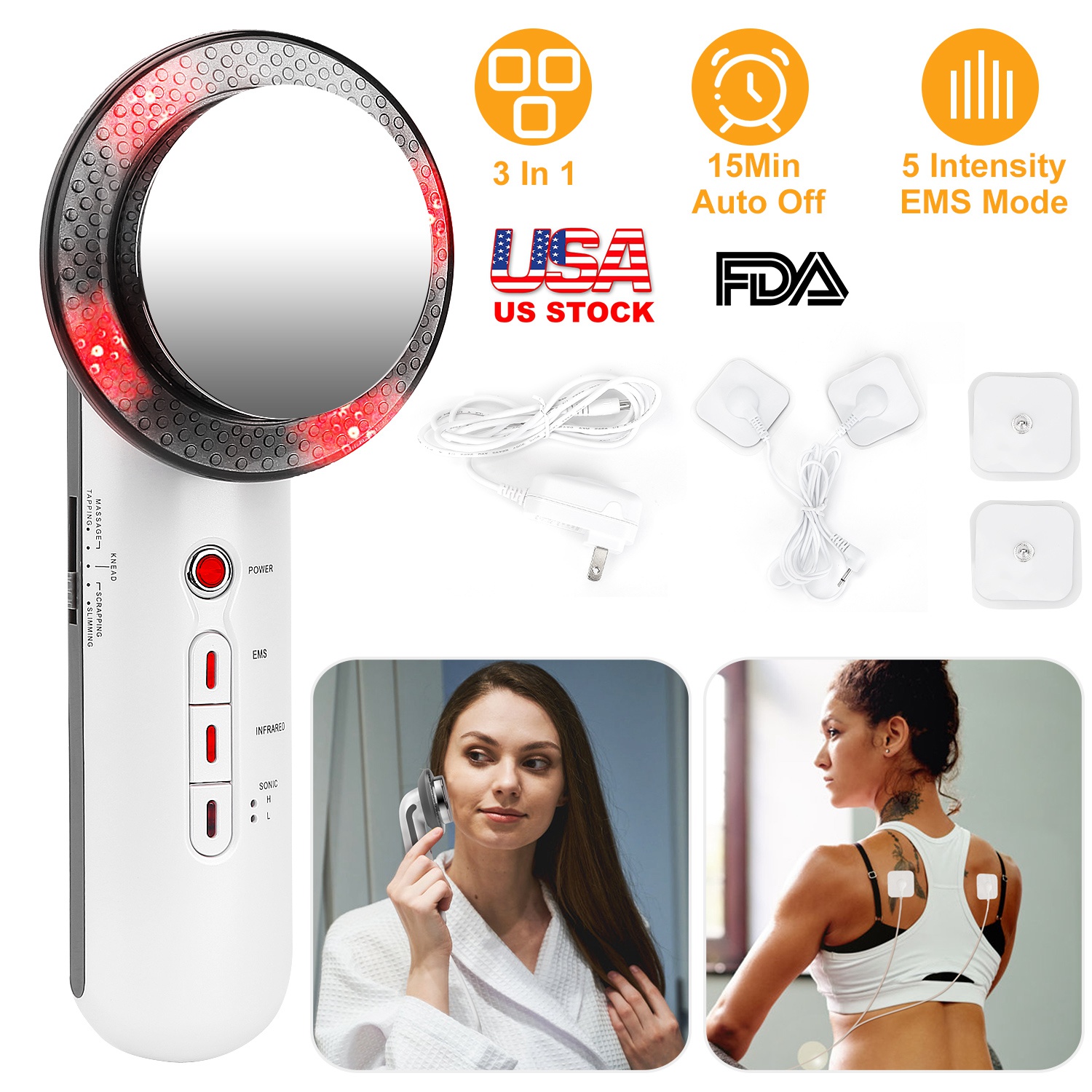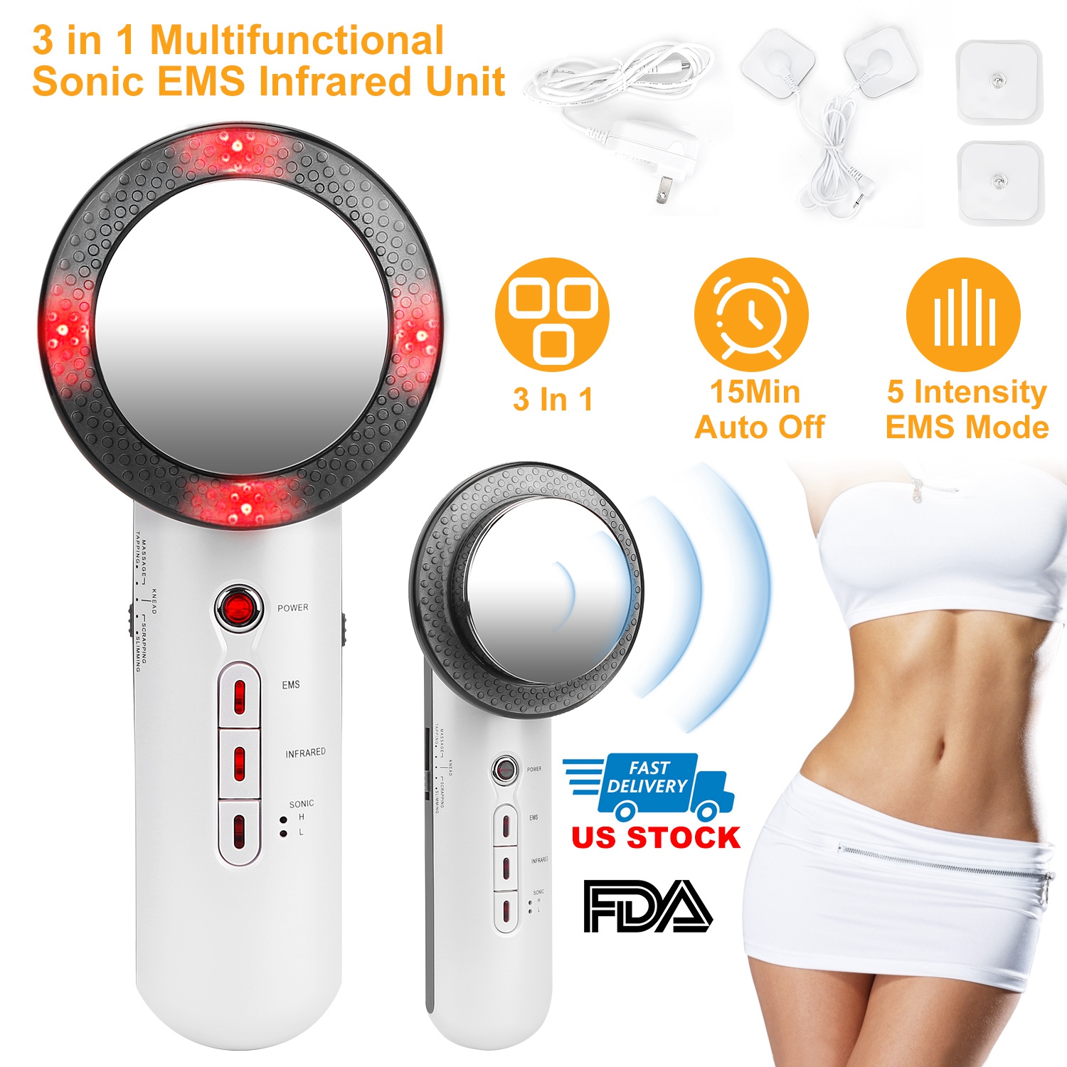 Our 3 in 1 body shaping machine lets you say goodbye to obesity, skin aging, wrinkles, loose skin! A great gift for your girlfriend. EMS bionic current removes extra fat at the waist and abdomen, arms etc.. Ultrasonic makes the skin care products penetrate into the skin, which can benefit for absorption of nutrition, to promote blood circulation for tightening skin, and infrared function eliminates body injures and prevent aging.